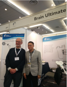 Dr. Barker visited YINGCHI booth in International Brain Stimulation Conference in 2019 and took a photo with YINGCHI R&D manager